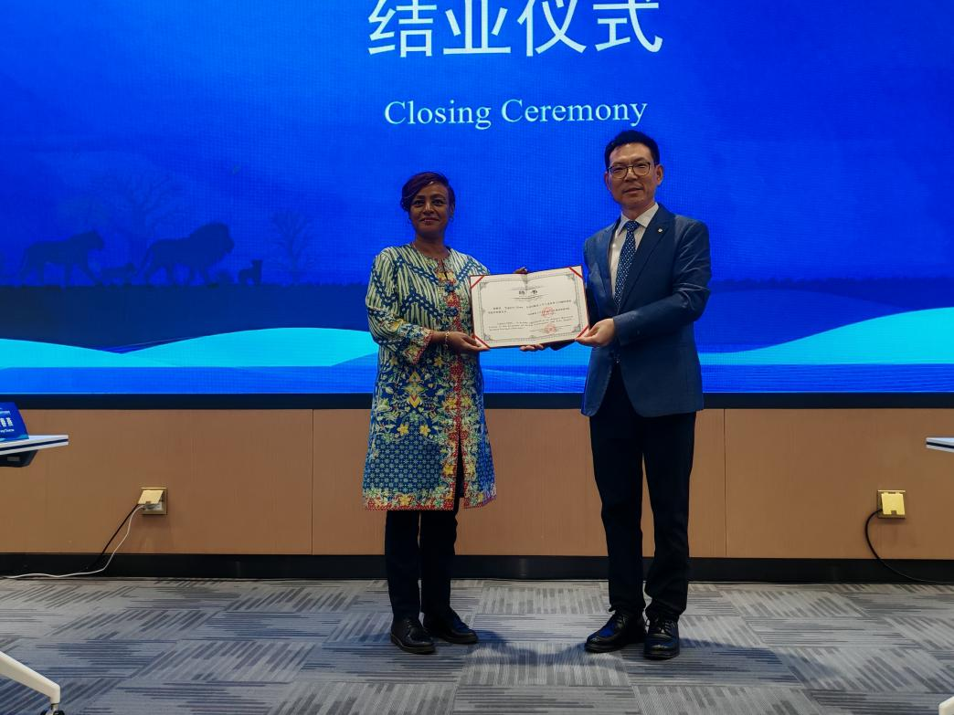 来自厄立特里亚的菲克雷苏斯代表全体学员致答谢辞。他说,本次研修跨越四川、新疆,时空广阔,收获满满;研修课程科学严谨,研修内容丰富多彩,研修方式多种多样。他向中国政府及会议承办方表示衷心的感谢,向本次研修班的精心组织、热情欢迎、盛情接待表示由衷的敬意。