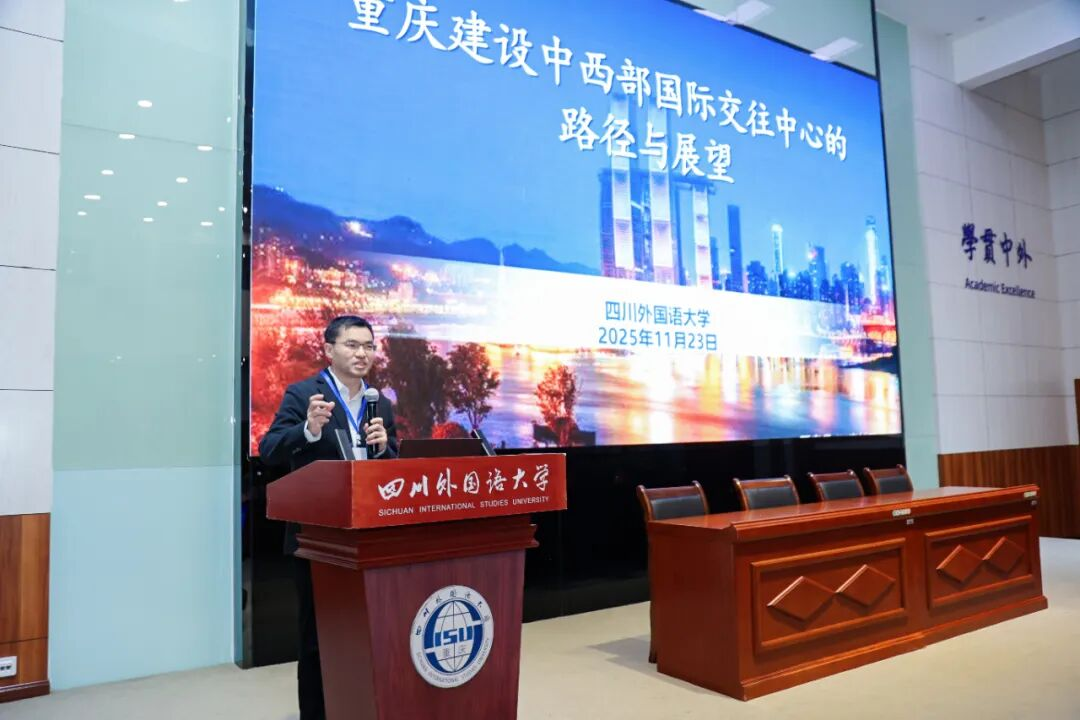 冯仁勇处长以《重庆建设中西部国际交往中心的路径与展望》为题,紧扣区域国别研究服务内陆开放综合枢纽的核心主题,提出四大实践创新维度。他强调,必须以习近平外交思想为根本遵循,依托元首外交引领全球治理体系完善,深刻阐释内政与外交、发展与安全、官方与民间、全局与局部的辩证逻辑,为区域开放发展提供方法论指引。结合成渝地区双城经济圈战略定位,他提出“五度”实践路径——提升国际事务参与度、强化要素集聚度、激活交往活跃度、优化开放环境舒适度、打响城市品牌知名度,以高质量研究服务赋能区域高水平开放与高质量发展,助力内陆改革开放高地建设。