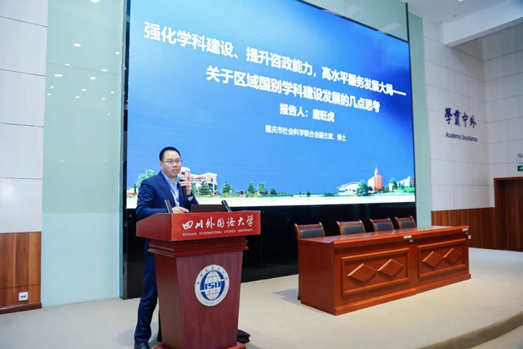 唐旺虎副主席的报告《强化学科建设、提升咨政能力,高水平服务发展大局》,系统阐释了区域国别学的战略价值与发展路径。他指出,作为顺应大国博弈加剧、“一带一路”建设深化及全球格局演变设立的一级学科,区域国别学兼具鲜明问题导向与交叉学科特质。针对当前学科建设面临的内涵深化不足、外延界定不清等挑战,他强调需以多学科联动为核心,强化“政产学研用”协同育人与创新机制,通过完善政策支持、深化校企合作、搭建国际平台等举措,提升对象国研究水平与复合型人才培养质量,最终实现服务国家大局、对接成渝战略的核心目标。