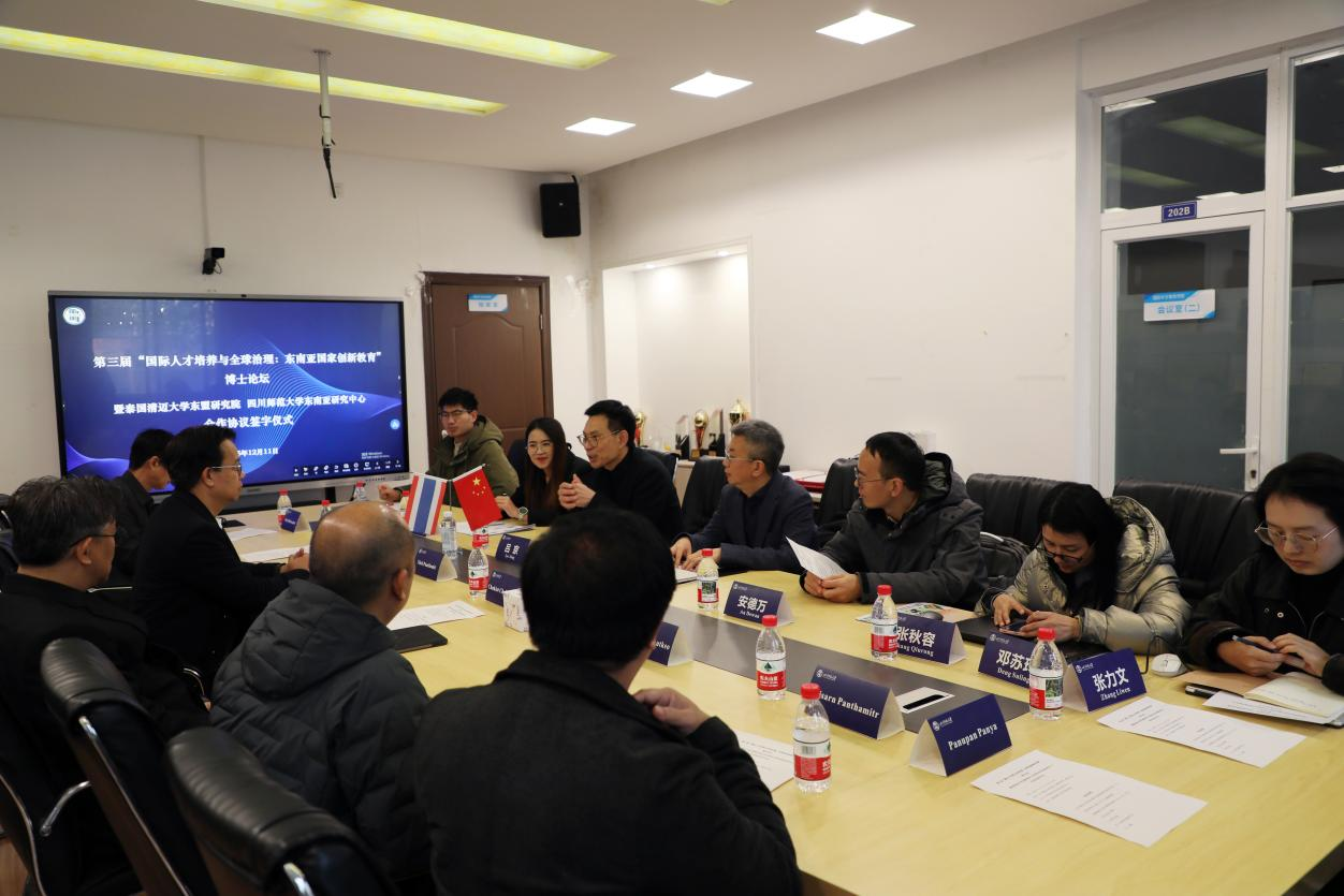 2025年12月11日,由国家民委“一带一路”国别和区域研究四川师范大学东南亚研究中心主办、泰国清迈大学东盟研究中心协办的第三届“国际人才培养与全球治理:东南亚国家教育创新”博士论坛在四川师范大学举行。泰国清迈大学东盟研究中心主任尼西特·潘特尼教授一行七人及四川师范大学东南亚研究中心老师参加会议。论坛由四川师范大学东南亚研究中心执行主任吕京主持。